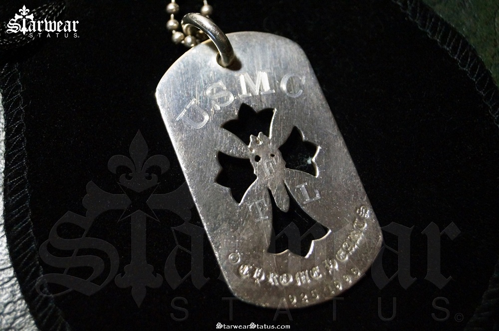 100% Authentic Chrome Hearts Diamond Etched .925 Sterling Silver Dog Tag Pendant & Necklace. (As Worn By Usher Raymond!)