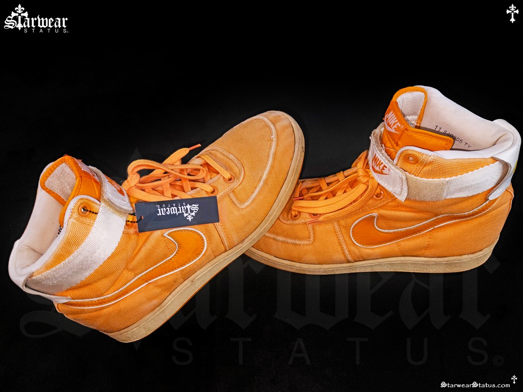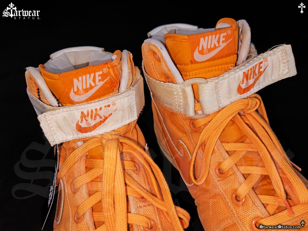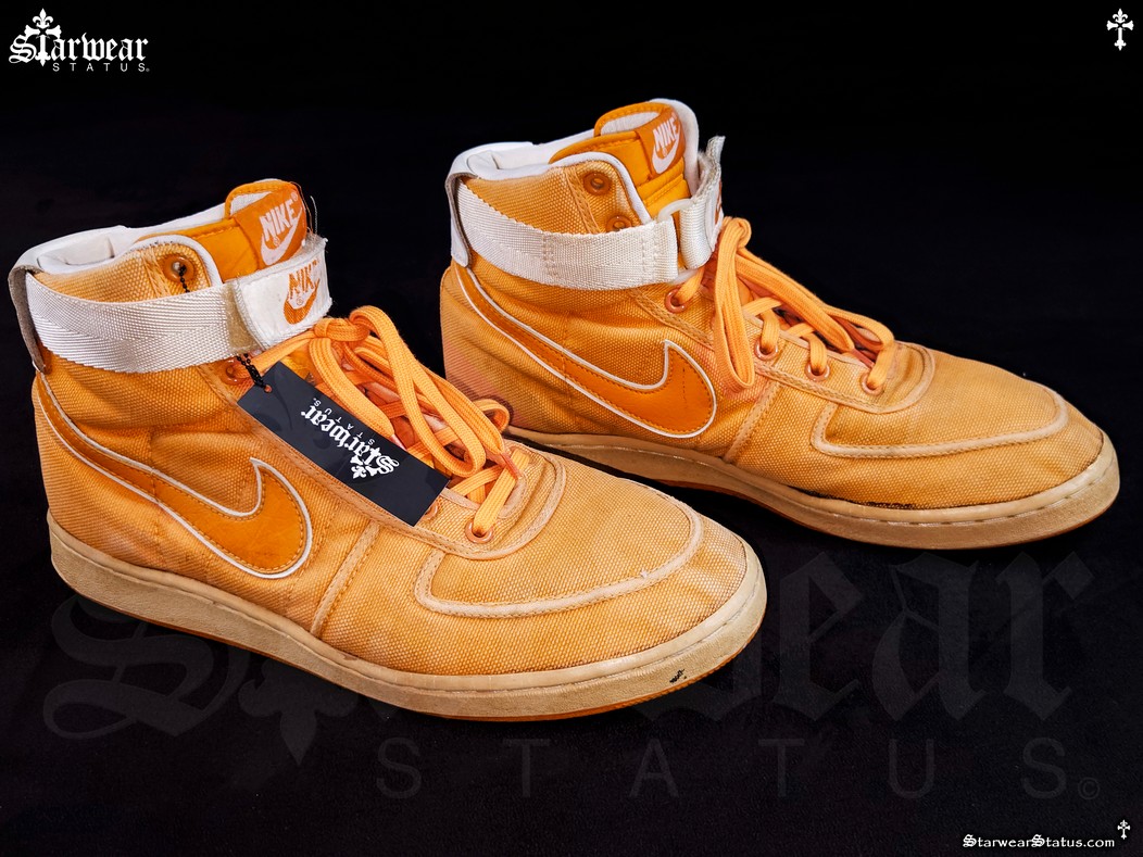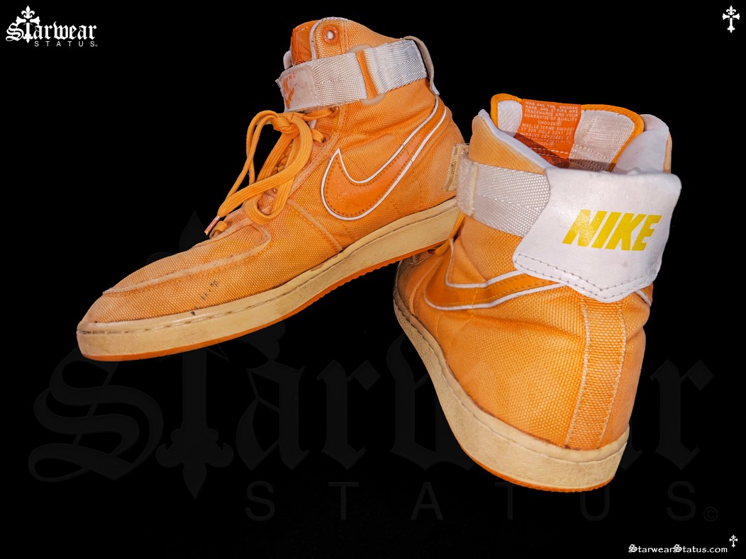 Nike introduced the Vandal in 1984, just one year before the film’s release — making these sneakers not only screen worn, but period-perfect. Their bold orange tone, utilitarian high-top profile, and futuristic athletic design subtly reinforce Doc Brown’s character: a brilliant, unconventional scientist standing slightly ahead of his time.
