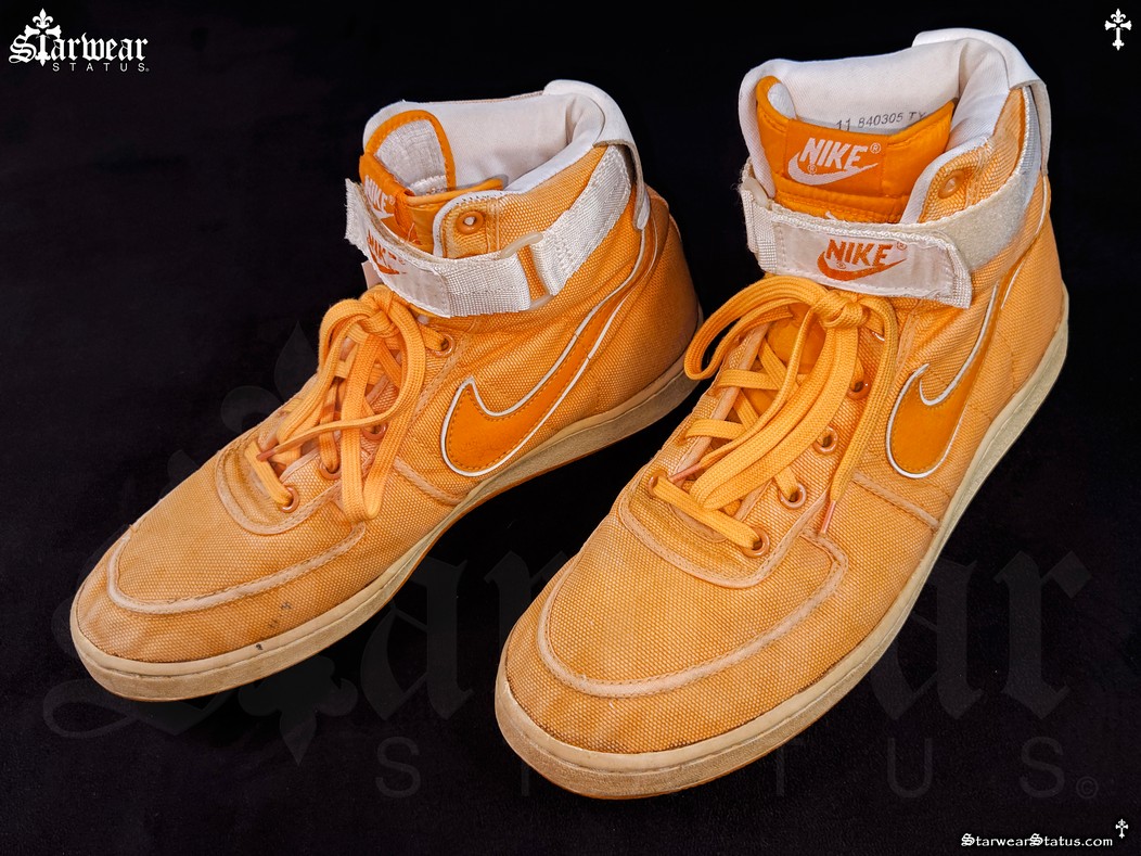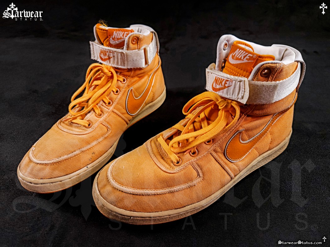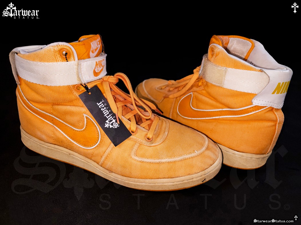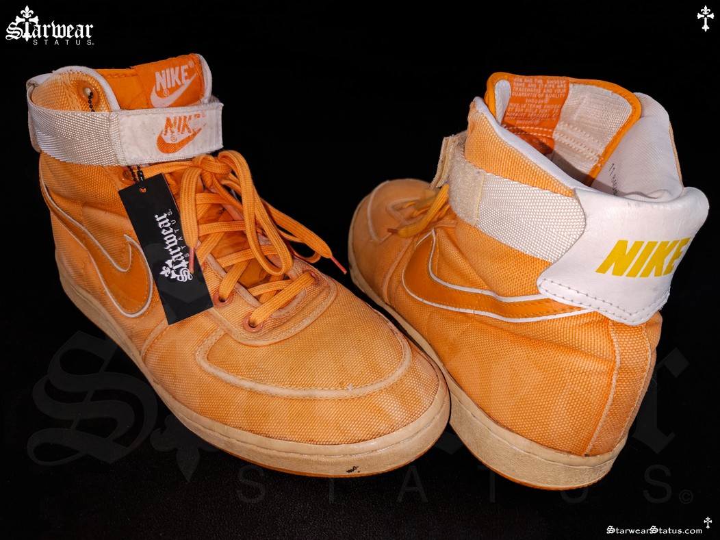 Nike introduced the Vandal in 1984, just one year before the film’s release — making these sneakers not only screen worn, but period-perfect. Their bold orange tone, utilitarian high-top profile, and futuristic athletic design subtly reinforce Doc Brown’s character: a brilliant, unconventional scientist standing slightly ahead of his time.