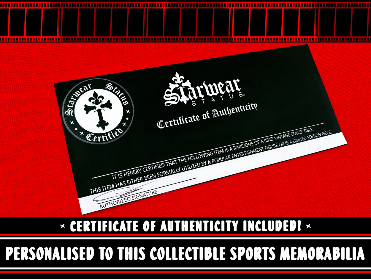 - Accompanied By Starwear Status (COA) – Certificate Of Authenticity! – Our Certificate of Authenticity is presented with an embossed Starwear Status Certified Metallic Sticker which preserves the Authenticity of these truly unique vintage designer collectibles and celebrity owned entertainment pieces.
