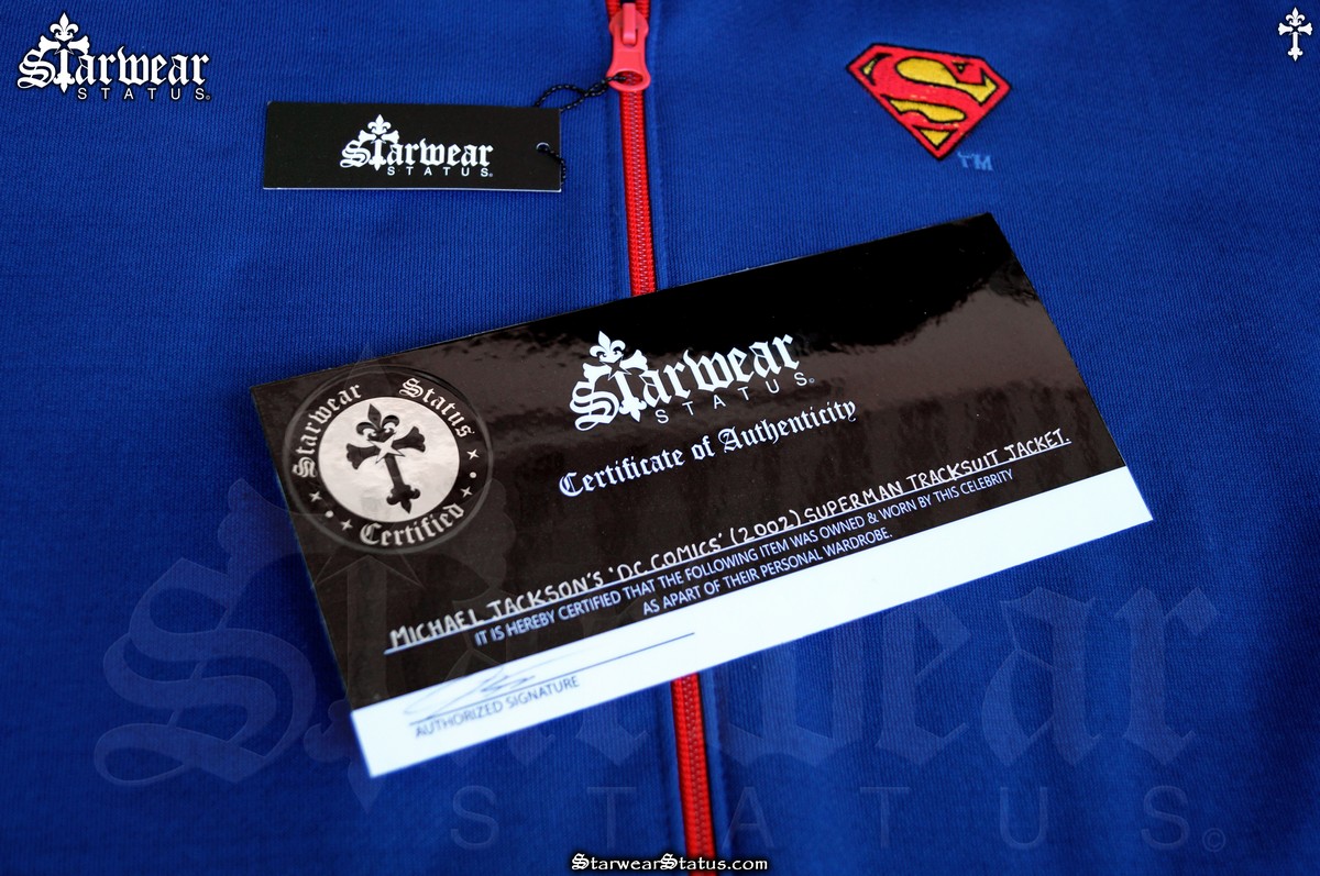 MICHAEL JACKSON PERSONAL WORN OWNED SUPERMAN JACKET ‘DC COMICS’ W/ SIGNED COA (CELEBRITY WARDROBE JACKET!) – WORN BY MICHAEL JACKSON IN (2005) AT METRO-ZOO IN MIAMI, FLORIDA. Accompanied By x2 Company Certificates Of Authenticity ‘COA’.