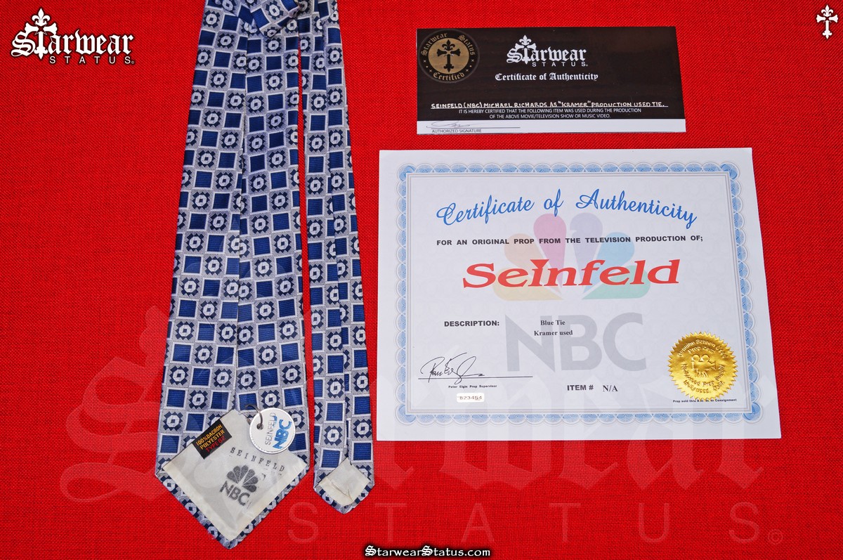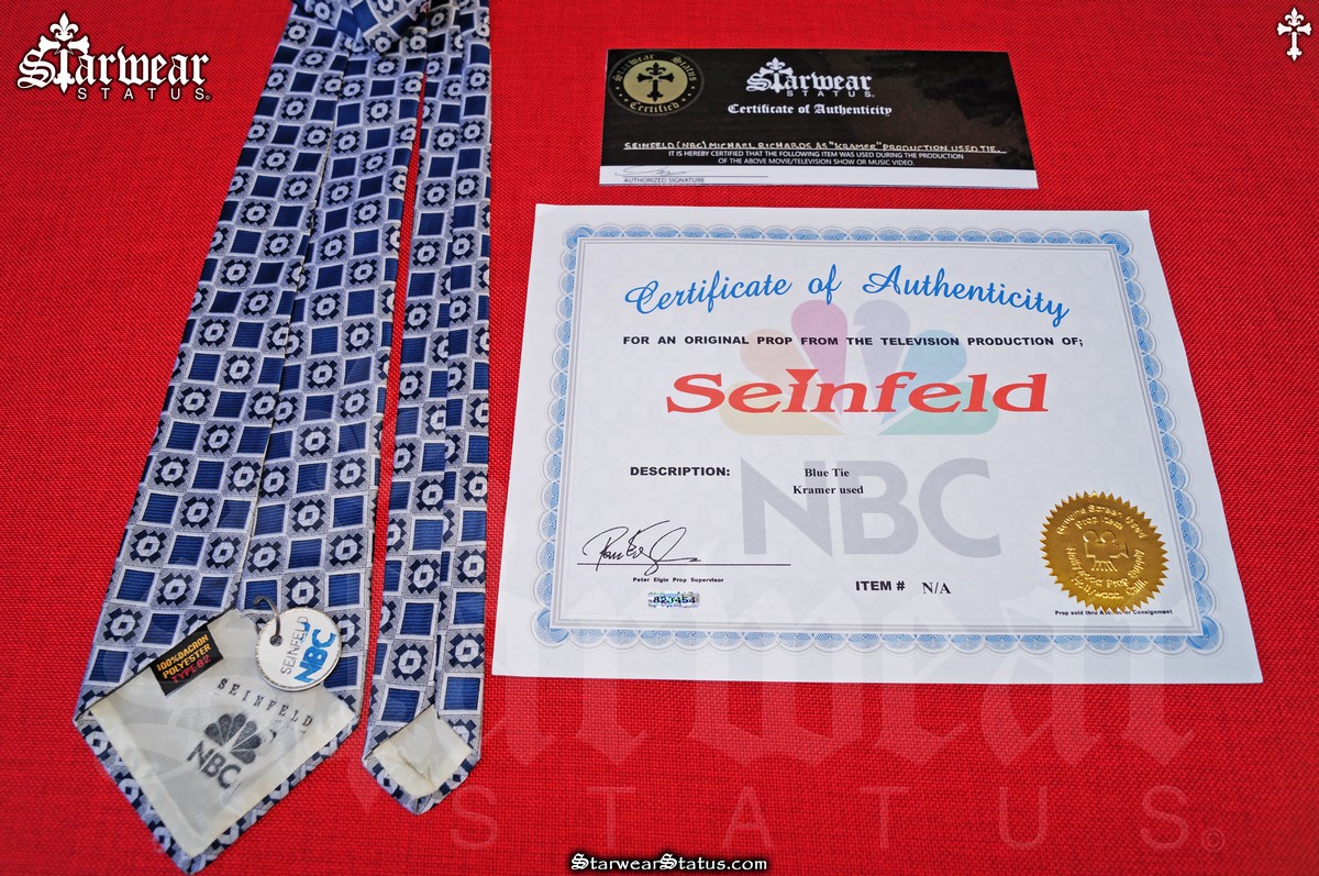 THE TIE IS OFFICIALLY MARKED WITH NBC’S LOGO STAMPS INCLUDES “SEINFELD LOGO STAMP” ON DOG-TAG WITH BAR CODE AND ITEM NUMBERING. ITEM NUMBER #823454.
