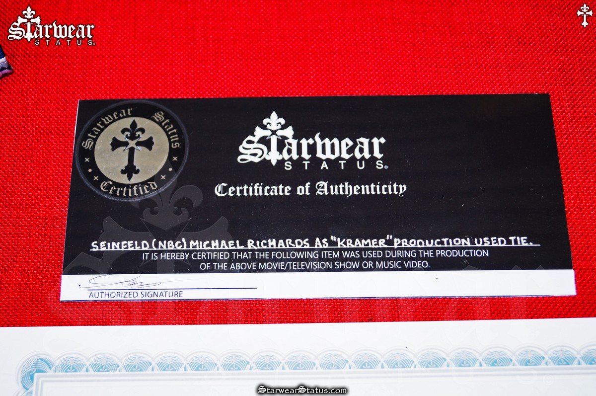 Starwear Status – Our Certificate of Authenticity is presented with an embossed Starwear Status Certified Metallic Sticker which preserves the Authenticity of these truly unique vintage designer collectibles and celebrity owned entertainment pieces.
