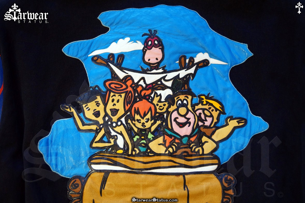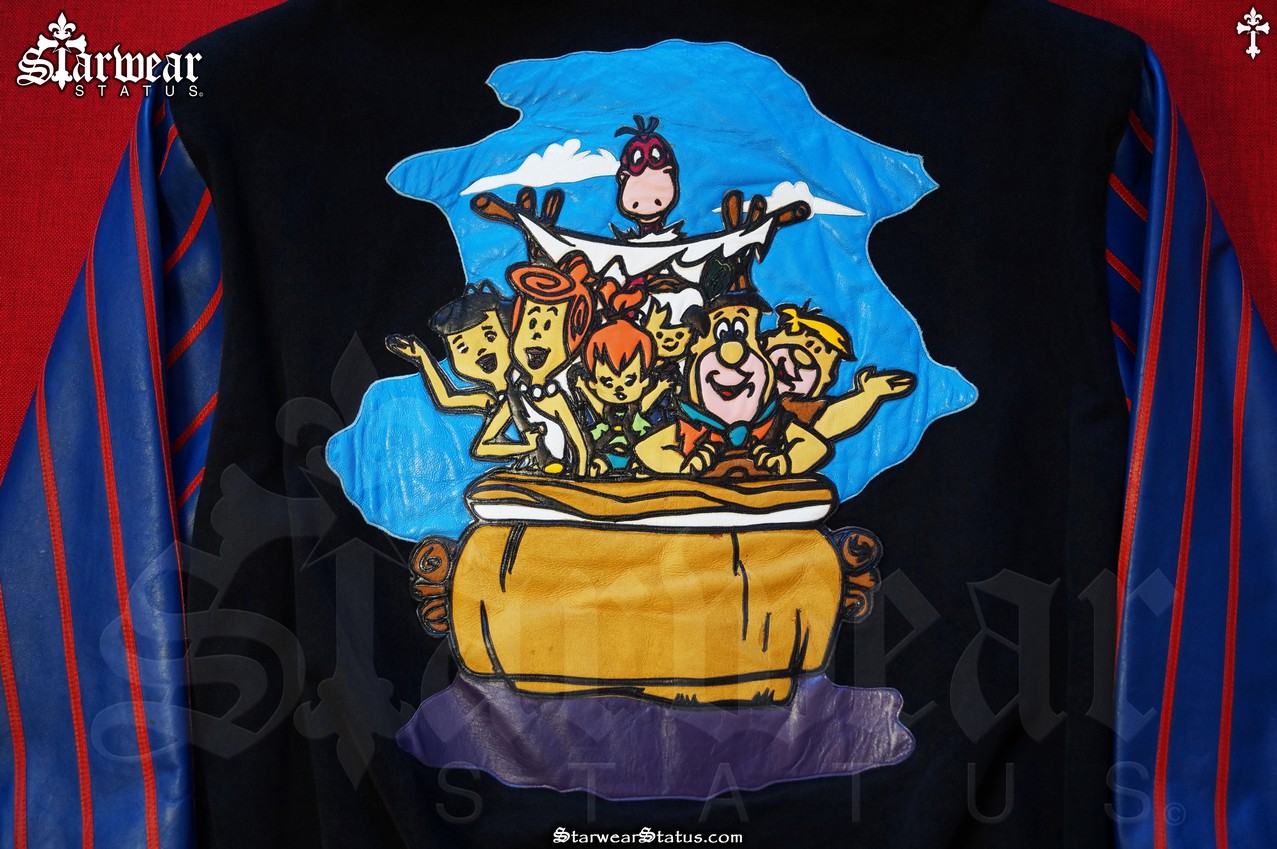 Vintage The Flintstones Jeff Hamilton 80s 90s Cartoon Leather Bomber Jacket Unisex Adult Size Medium-Large. (One Of A Kind!)