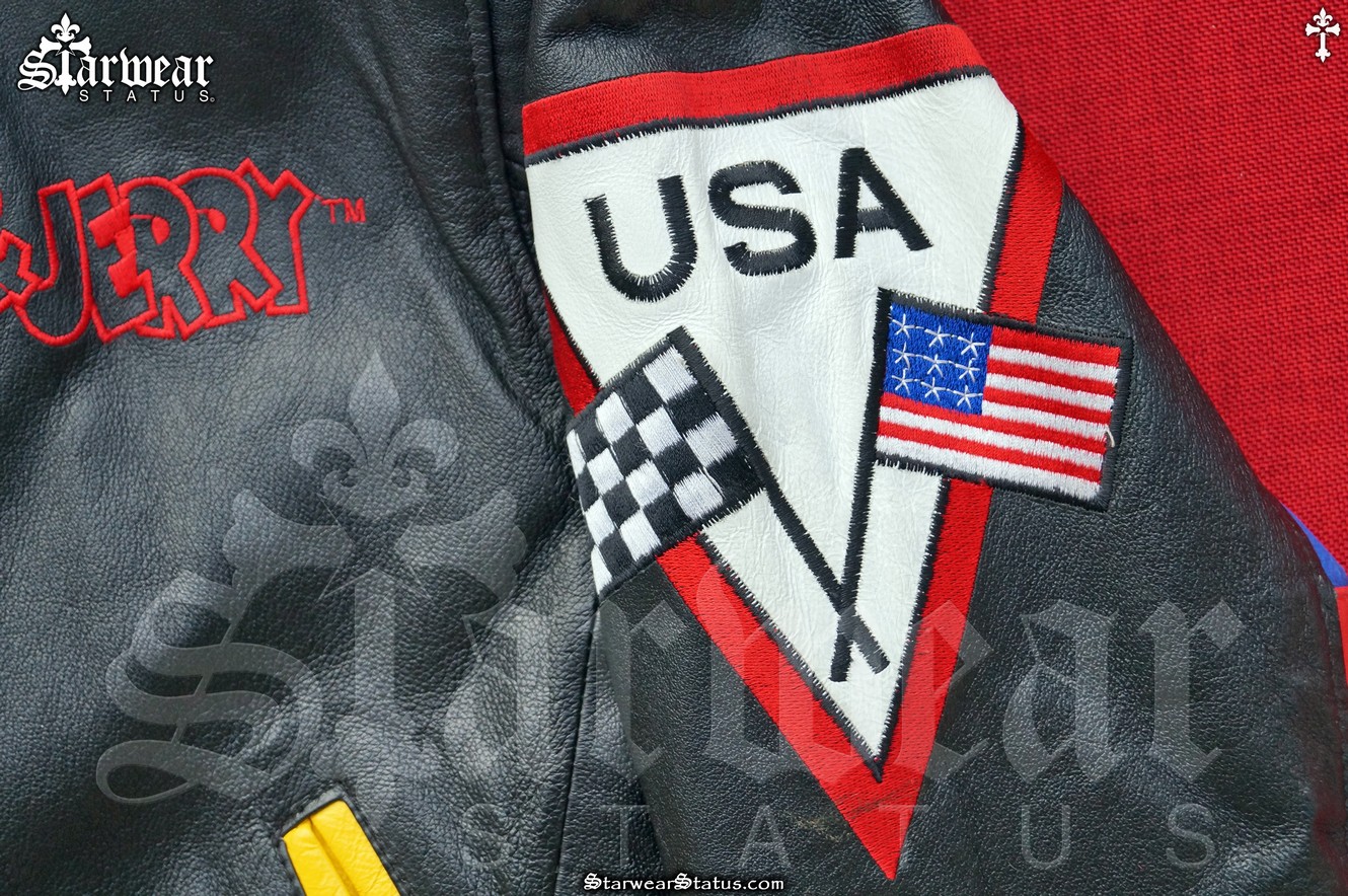 Tom and Jerry 90s Vintage Cartoon Leather Jacket By Montana Toons Men’s. Tag Size XS (Fits More Like – Medium/Large!) – Versatile Fit with Elastic Cuffs & Waistband Flexibility. (One Of A Kind Original!)