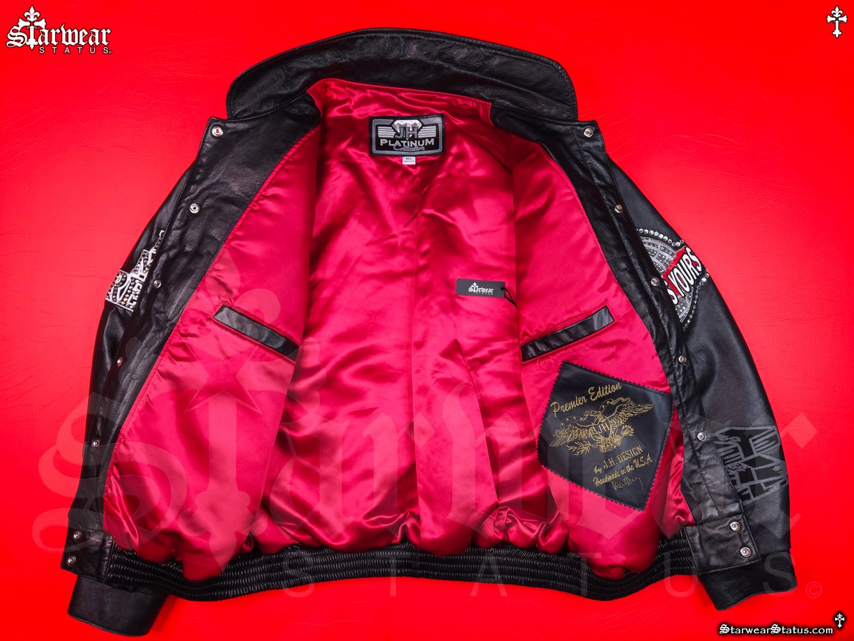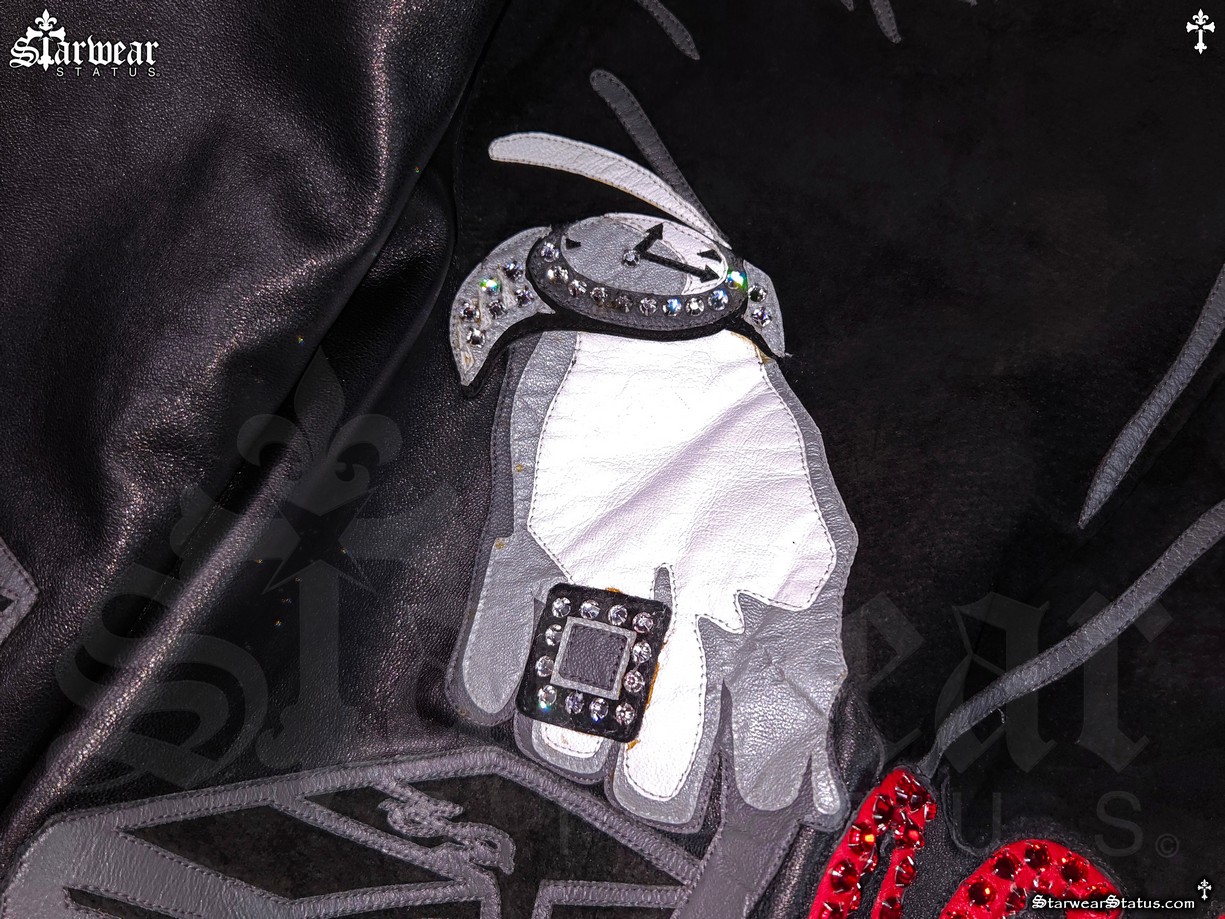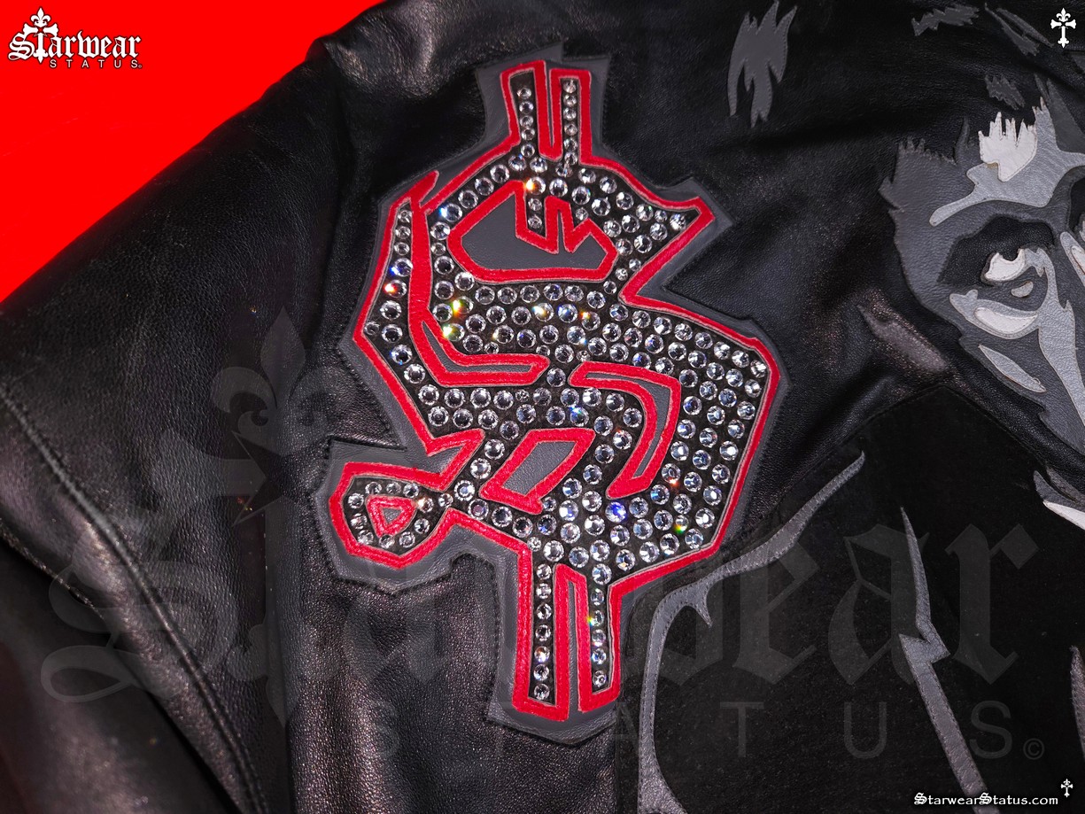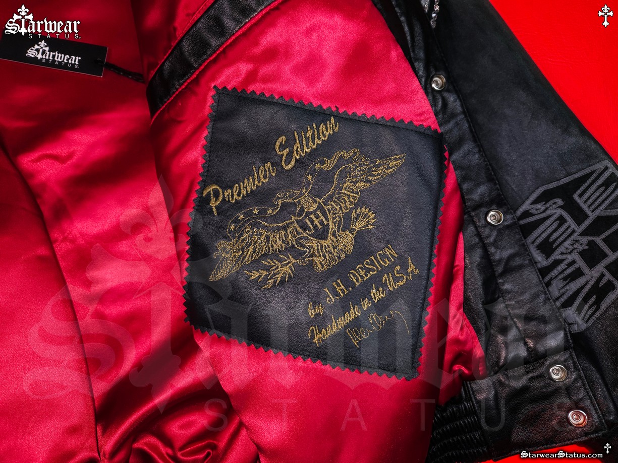 Step into legendary status with this ultra-rare Jeff Hamilton x Scarface Platinum Collection “Premier Edition” masterpiece – a jacket that sits at the very top tier of Jeff Hamilton’s most sought-after designs. This isn’t just a jacket, it’s a statement piece – from the oversized red Scarface lettering across the chest, to the “Power, Money, Respect” embroidered on the right sleeve, to the breathtaking back design featuring larger-than-life Tony Montana artwork – this jacket is pure visual dominance. If you’re ready to own the world’s most insane Scarface jacket ever created, this is your moment – The World Is Yours.