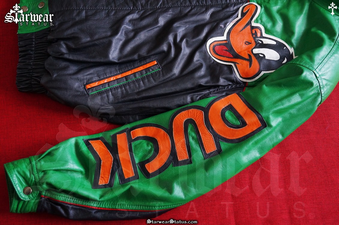 Vintage 90s Looney Tunes ‘Maziar Leather Gallery’ Bugs Bunny x Daffy Duck Warner Bros Cartoon Bomber Jacket M / L (Extremely Rare!)