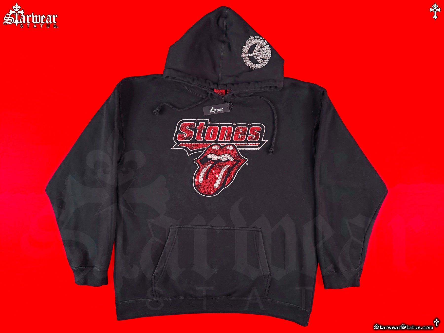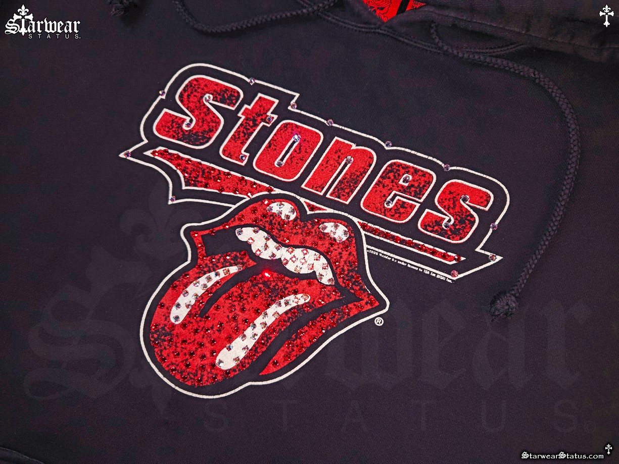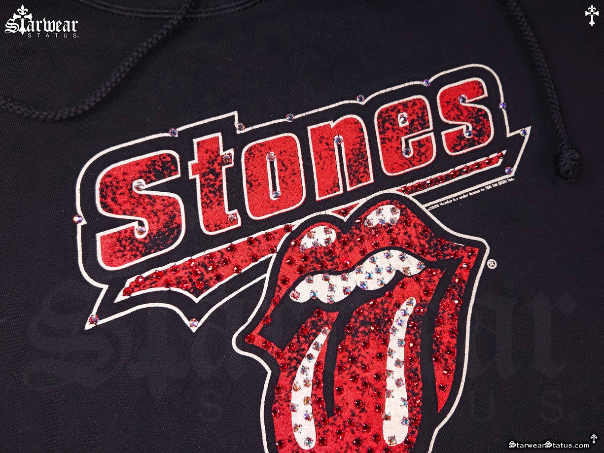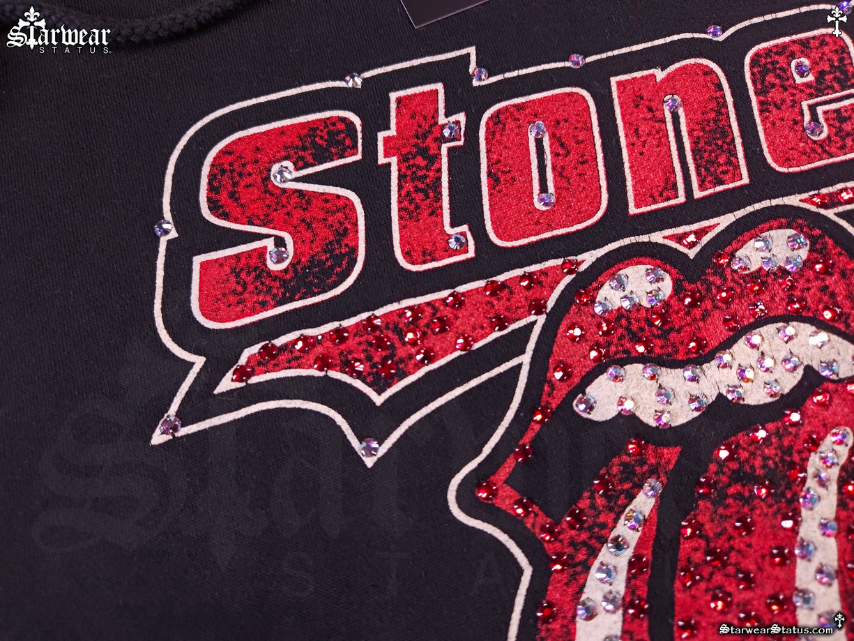 - THIS HOODIES DESIGN SHOWCASES THE CLASSIC “ROLLING STONES” TOUNGE LOGO, COMPLEMENTED BY SWAROVSKI CRYSTAL EMBELLISHMENTS THROUGHOUT.